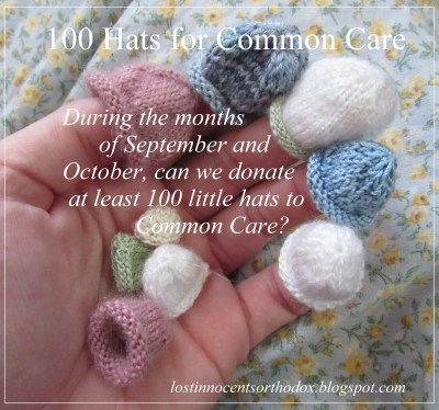 I have a challenge for my readers: can we make and donate at least 100 hats to Common Care during the next two months? I sent off nine little hats in the mail today (shown in the photo) so that’s a start! Michelle (the director of Common Care) is flat out of hats and needs more to send to grieving families.